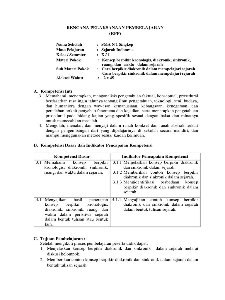 Nov 13, 2018 · kompetensi dasar (pengetahuan) kompetensi dasar (keterampilan) 3.1 memahami konsep berpikir kronologis, diakronik, sinkronik, ruang, dan waktu dalam sejarah 4.1 menyajikan hasil penerapan konsep berpikir kronologis, diakronik, sinkronik, ruang, dan waktu dalam peristiwa sejarah dalam bentuk tulisan atau bentuk lain 3.2 memahami konsep perubahan dan keberlanjutan dalam sejarah 4.2 menerapkan. Konsep sejarah yang akan memberikan kepada kita sebuah gambaran yang utuh tentang peristiwa atau perjalanan sejarah dari aspek tertentu adalah d. Apr 20, 2020 · dengan konsep kronologis sejarah akan memberikan kepada kita gambara yang utuh tentang peristiwa atau perjalanan sejarah dari tinjauan aspek tertentu sehingga dengan mudah kita dapat menarik manfaat dan makna dari hubungan antar peristiwa yang terjadi. Sejarah mengajarkan kepada kita cara berpikir kronologis, artinya berpikirlah secara runtut, teratur, dan berkesinambungan. Aug 09, 2017 · 1. Kronologis mengandung arti pengetahuan tentang urutan waktu dari sejumlah kejadian atau peristiwa. Konsep kronologi akan memberikan kepada kita gambaran yang utuh tentang peristiwa atau perjalanan sejarah dari tinjauan aspek tertentu. 35 menganalisis cara berpikir diakronik dan sinkronik dalam karya sejarah 45 menyajikan hasil. Mengkaji peristiwa sejarah yang terjadi pada. Sep 06, 2018 · konsep berpikir kronologis dalam sejarah telah mengajarkan kepda kita cara berpikir yang runtut dan berkesinambungan. Dengan konsep kronologis, sejarah akan memberikan kepada kita gambaran yang utuh tentang peristiwa atau perjalanan sejarah dari tinjauan aspek tertentu sehingga dengan mudah kita dapat menarik manfaat dan makna dari hubungan antara peristiwa yang terjadi. Sep 20, 2014 · sejarah mengajarkan kepada kita cara berpikir kronologis, artinya berpikirlah secara runtut, teratur, dan berkesinambungan. Cara berpikir diakronik (kronologis) dalam mempelajari sejarah jelaskan manfaat konsep sinkronis dalam.