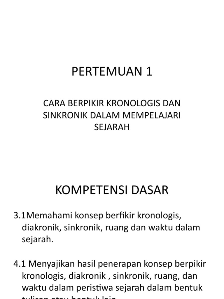 Jan 28, 2021 · fatikha aisya s. Cara berpikir diakronik (kronologis) dalam mempelajari sejarah jelaskan manfaat konsep sinkronis dalam. Sep 06, 2018 · konsep berpikir kronologis dalam sejarah telah mengajarkan kepda kita cara berpikir yang runtut dan berkesinambungan. Nov 13, 2018 · kompetensi dasar (pengetahuan) kompetensi dasar (keterampilan) 3.1 memahami konsep berpikir kronologis, diakronik, sinkronik, ruang, dan waktu dalam sejarah 4.1 menyajikan hasil penerapan konsep berpikir kronologis, diakronik, sinkronik, ruang, dan waktu dalam peristiwa sejarah dalam bentuk tulisan atau bentuk lain 3.2 memahami konsep perubahan dan keberlanjutan dalam sejarah 4.2 menerapkan. Konsep berpikir kronologis dalam sejarah telah mengajarkan kepada kita cara berpikir yang.