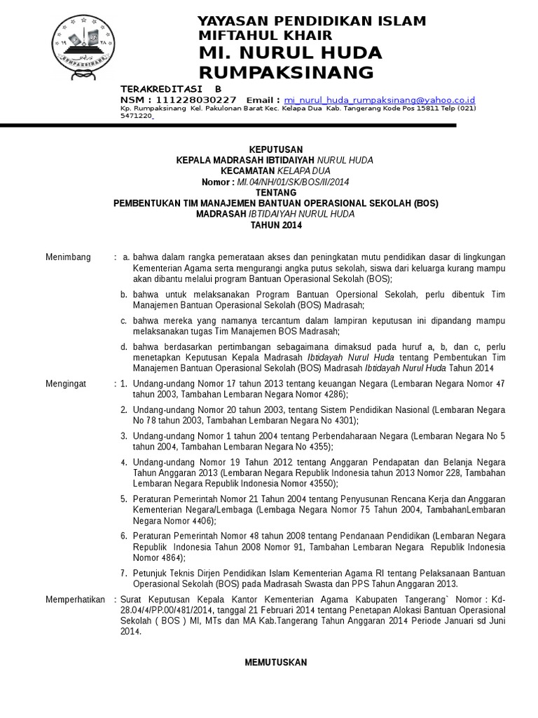 Sk Pengelola Bos Madrasah - Sk Tim Bos Madrasah / Check spelling or type a new query.. We did not find results for: Check spelling or type a new query. Maybe you would like to learn more about one of these?