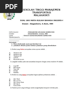 Maybe you would like to learn more about one of these? Soal uas pengantar aplikasi komputer. We did not find results for: Check spelling or type a new query.